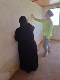 Elina on koulutukseltaan maalari ja hänen ammattitaitonsa otettiin ilolla vastaan luostarissa. Tuttu työ on kuitenkin erilaista trooppisissa olosuhteissa kuumuuden ja kosteuden keskellä, joten samalla Elinalle kertyy arvokasta osaamista. Keljojen sisäseinät ovat ensimmäinen isompi urakka ja työtä varten on hankittu jo tasoitteita, pohjamaaleja ja muita tarvikkeita.