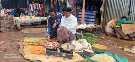 Kylän valintakomitea valitsi Yeshihargen saamaan 7 000 birriä (38,50€) starttirahaa Filantropian rahoittaman projektin kautta. Tämän tuen avulla hän alkoi myydä perunoita, sokeriruokoa, sipulia ja maissia paikallisilla markkinoilla. Hän ansaitsee keskimäärin noin 400 birriä (2,20€) päivässä, ja kiireisinä markkinapäivinä, kuten sunnuntaisin ja keskiviikkoisin, hän voi ansaita jopa 2 000 birriä (11€) päivässä. Hänen tulonsa kattavat nyt mukavasti vuokran ja päivittäiset elinkustannukset.